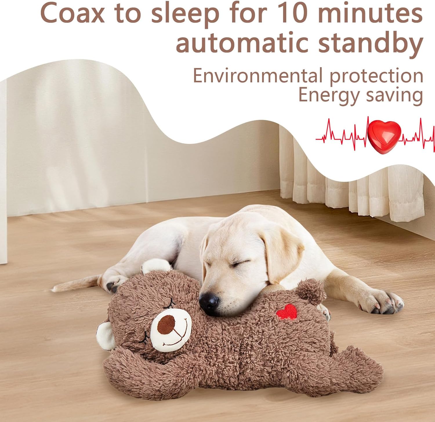 - Design 'orso realistico: combinare il fascino di un aspetto vivido 'orso con simulazione continua del battito cardiaco, promuove la calma e fornisce un senso di sicurezza per i cani, contribuendo a ridurre le tendenze che abbaiano indotte dallo stress